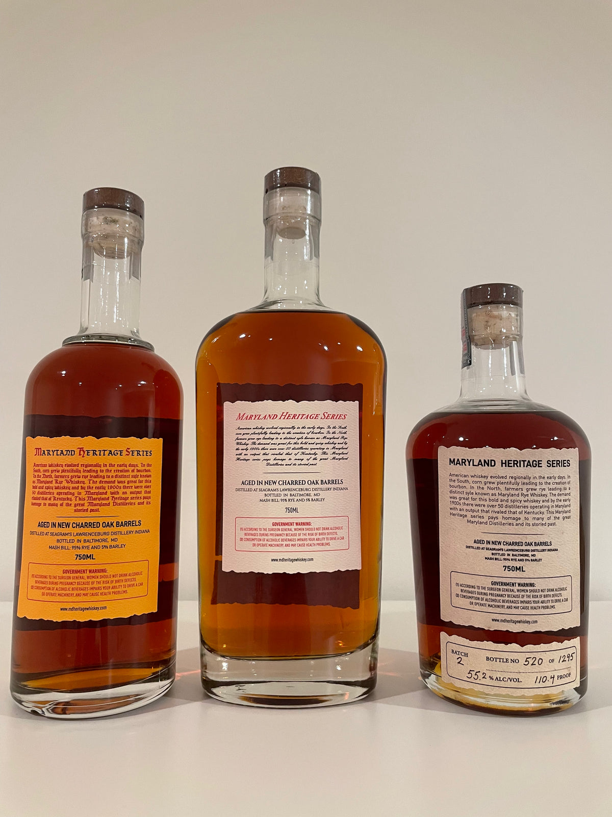 MD Heritage Rye was recently started by two friends of ours in the spirits industry and was built to showcase some of the amazing brands and labels that existed during the long distilling history of Maryland. Their first 3 releases are each made up of unique blends all consisting of 14 year MGP (Indiana distilled) rye, bottled at cask strength, which is considered some of the most sought after rye on the market today. With a 14 year age statement this is also some of the oldest MGP rye released to the market in recent history and almost unheard of in the market today as most of the rye being released is half that age. We had the privilege of sampling these 3 blends and they are all fantastic. This is your chance to own a piece of "new history" and to celebrate the distilling history of Maryland.