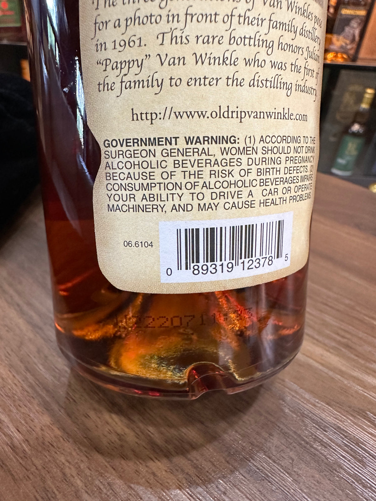 The last year of the wax top 23's, this was a split bottling year with some being bottled using the gold foil. These particular expressions of the van winkle line up contained whiskey distilled prior to Buffalo Trace at the Old Fitzgerald distillery which was producing the famous stitzel-weller distillate used for this bottle.