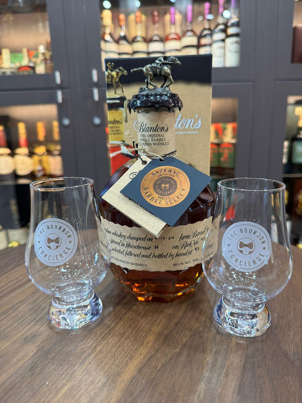 The Bourbon Concierge Blanton's Gift Set - Single Barrel Store Selection Blanton's Bourbon 750ml & 2 Etched Tasting Glasses
