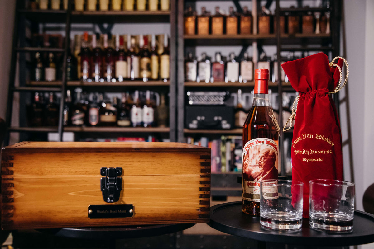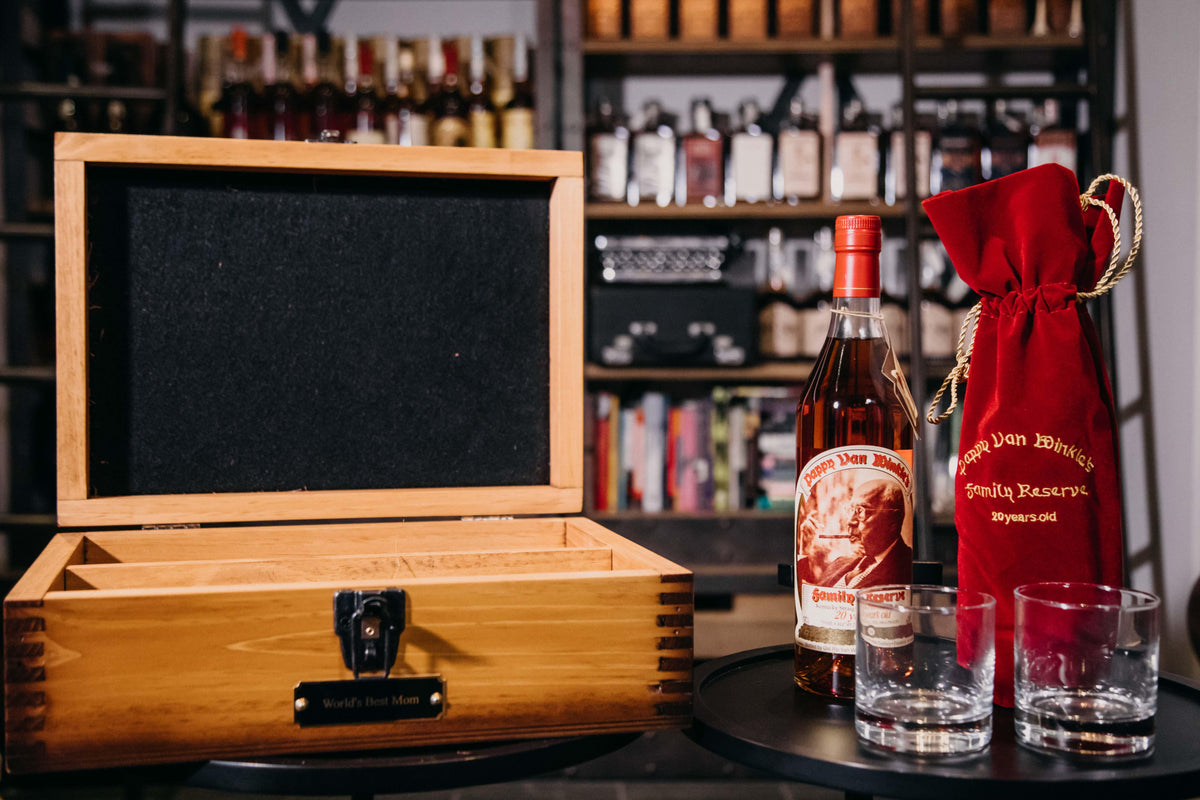 "World's Best Mom" Pappy Van Winkle 20 Year Bourbon Handcrafted Mother's Day Birthday Gift Box