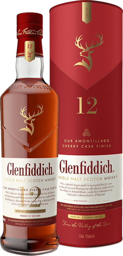 This vibrant single malt scotch whisky is matured for 12 years in American and European Oak Sherry casks before finishing in Amontillado casks for a distinctively rich and refined depth of flavor.