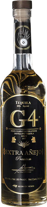 Aged for three years in the same very old Tennessee whiskey barrels, our golden, delicious Extra Añejo takes G4 Blanco from youthful spirit to full grown wisdom. Silky and oaky, it’s a glorious kiss on the lips.