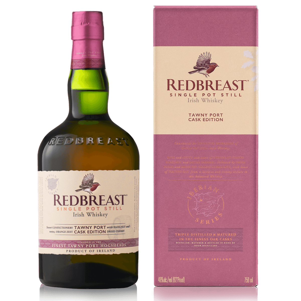 Redbreast Tawny Port Cask Edition is a single pot still Irish whiskey initially matured in a combination of bourbon and oloroso sherry casks. The whiskey was then finished in Tawny Port casks for a number of years, adding a new dimension to the profile used in the expression. All of the whiskeys then completed their maturation journey by marrying in freshly seasoned tawny port hogsheads for a final maturation period of 14-25 months.