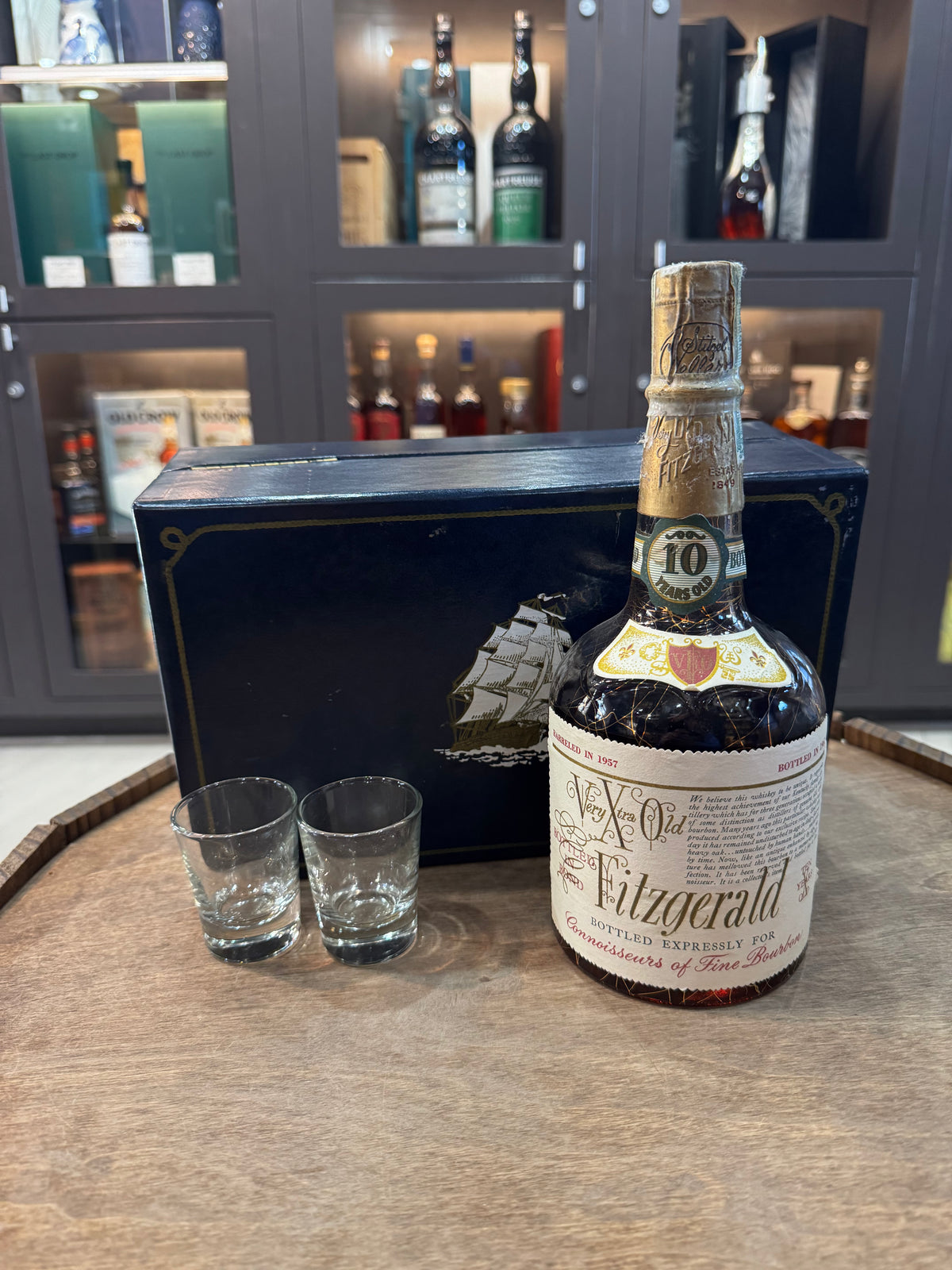 Very Xtra Old Fitzgerald 10 year Bottled in Bond Gift set 1959-1969 blue box