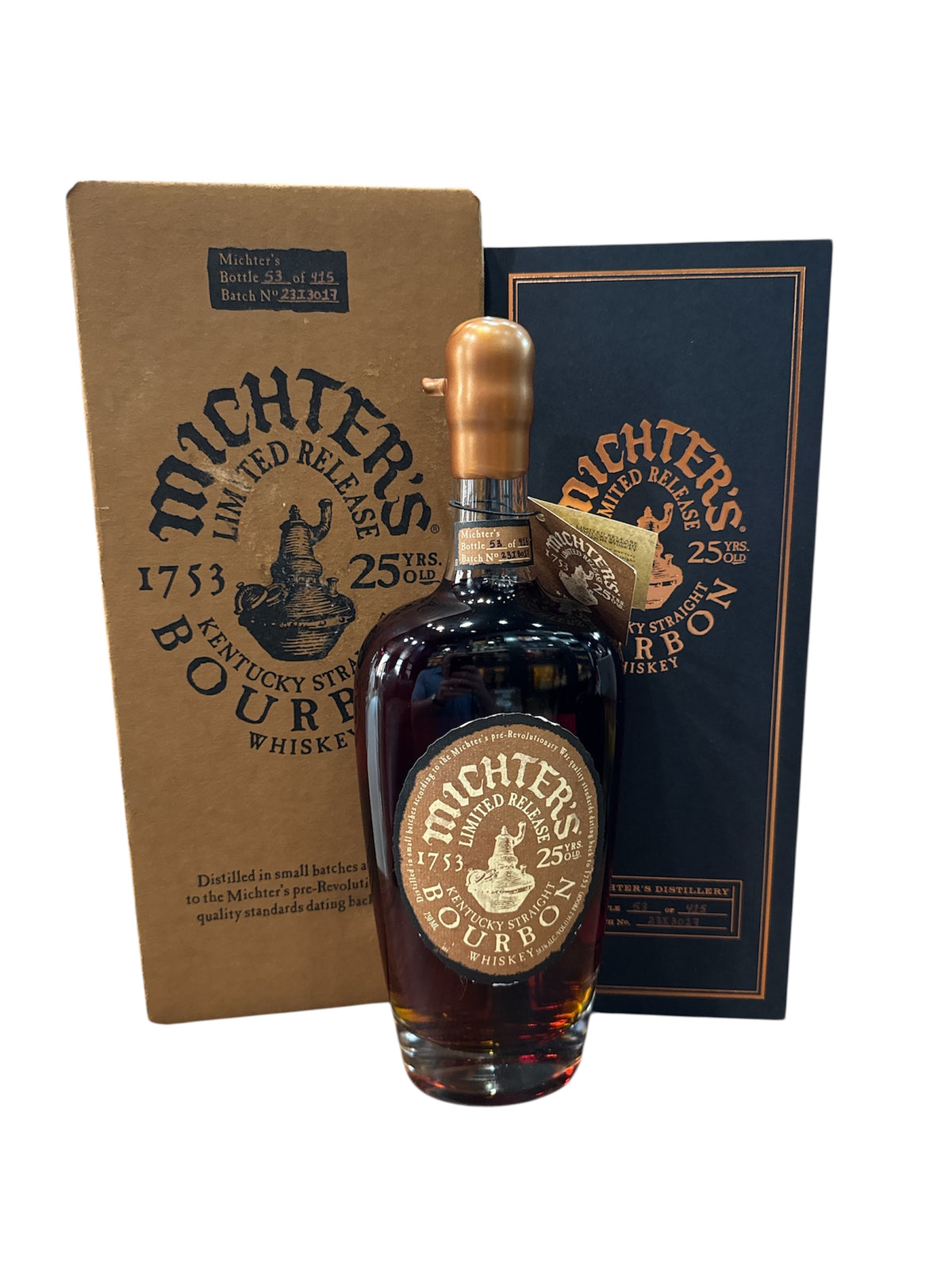 We believe that our 25 Year Kentucky Straight Bourbon is as fine as any bourbon ever released throughout Michter’s storied history. This exceptionally flavorful bourbon was distilled from a select mashbill, then matured to perfection for over a quarter of a century in specially chosen, new charred American white oak barrels. We continue to strive to make the best bourbon possible regardless of production cost. We hope you enjoy our Michter’s 25 Year Limited Release Bourbon as a fine emblem of our commitment to excellence.