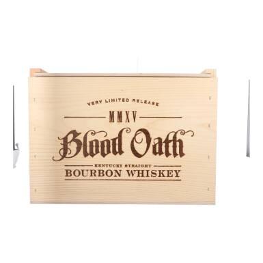 The original wooden box used by the three pack of blood oath 1 bottles.